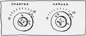 I like to say that, for most people, the dials of “trying harder” and “being smarter” are already turned up to “10.” There’s just not much room for making more effort or being more clever. It’s simply not going to work. Those dials are turned up all the way. You are already trying your hardest and working your smartest.