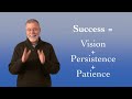 • How “Success = Vision + Persistence + Patience,” and